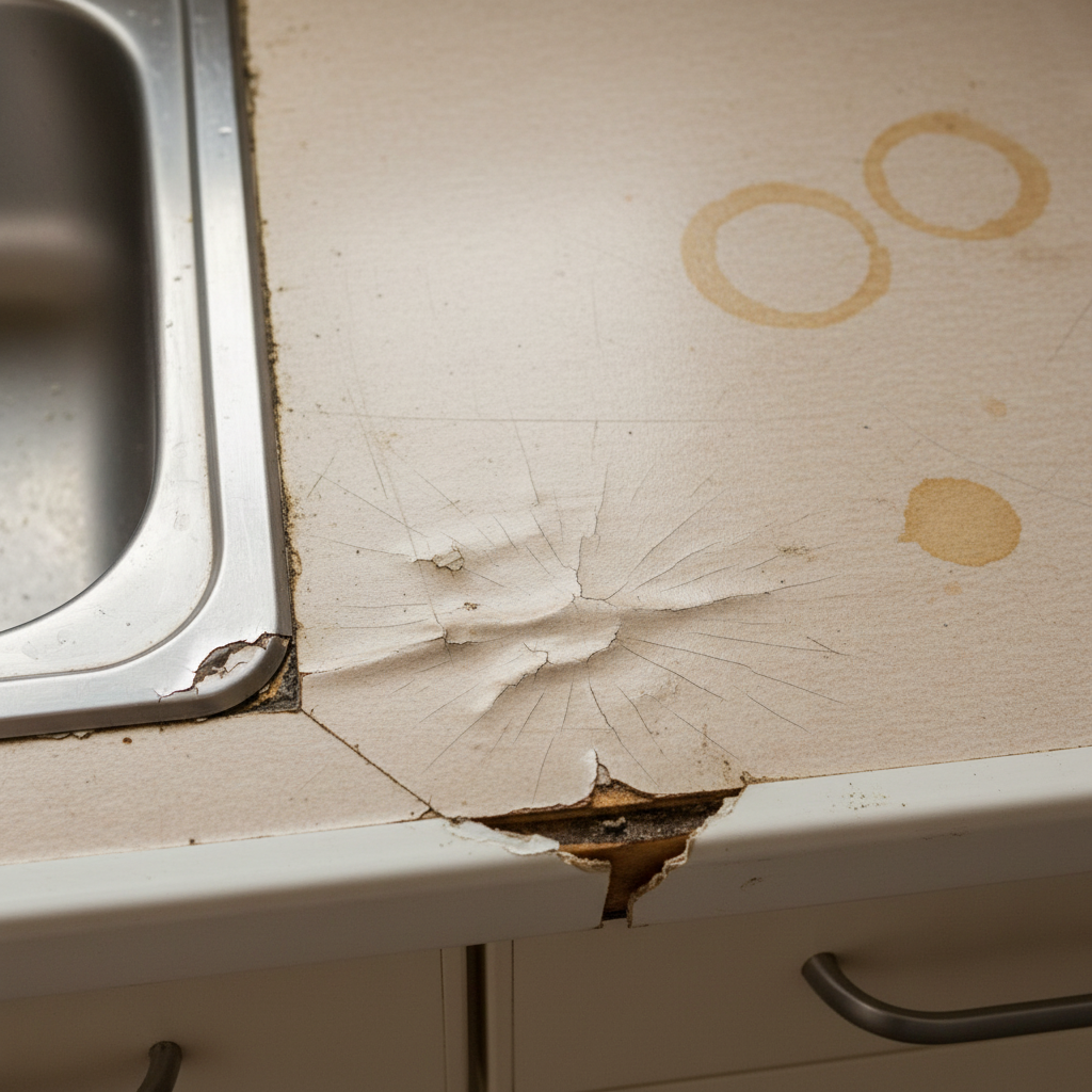 - Кромка. Самое больное место. Если кромка тонкая, бумажная или плохо проклеена — считай, столешница уже мертва. Вода попадет под нее через месяц, плита разбухнет, и пойдет волнами. Хорошая кромка должна быть толстой, пластиковой (ПВХ или ABS) и плотно прилегать. Проведи ногтем по стыку: если чувствуешь ступеньку — будут собираться грязь и вода. Не бери.
