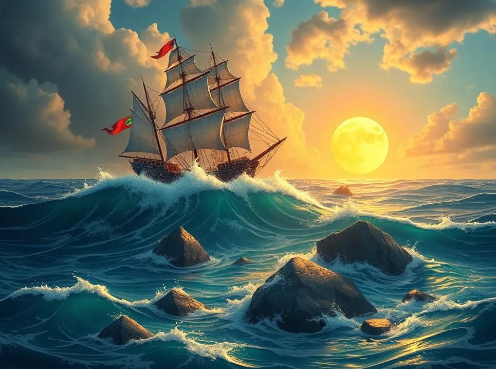 Корабль, вОлнами умытый,