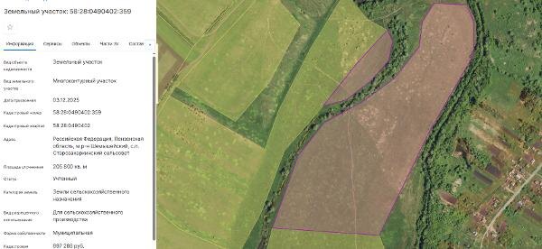 Пензенской области, с кадастровым номером 58:28:0490402:359, местоположением: Российская Федерация, Пензенская область, Шемышейский район, Старозахаркинский сельсовет. Площадь земельного участка составляет 205800 кв.м. Категория земель – земли сельскохозяйственного назначения. Вид разрешенного использования – для сельскохозяйственного производства. Канал: Госземля Пензенская область Область: обл Пензенская Район: м.р-н Шемышейский Населенный пункт: с.п. Старозахаркинский сельсовет Локация: Смотреть на карте ВРИ: Сельскохозяйственное использование Кадастровый номер: 58:28:0490402:359 Кадастровая стоимость: - Вид сделки: Аренда Площадь: 205800 м² Начальная цена: 65095.00 руб. Дата завершения: 10.03.2026 Подробнее: ГИС ТОРГИ #госземля #земляотгосударства #земля #земельныйучасток #земельныеторги #торги #аукцион #арендаземли #аренда #пензенскаяобласть