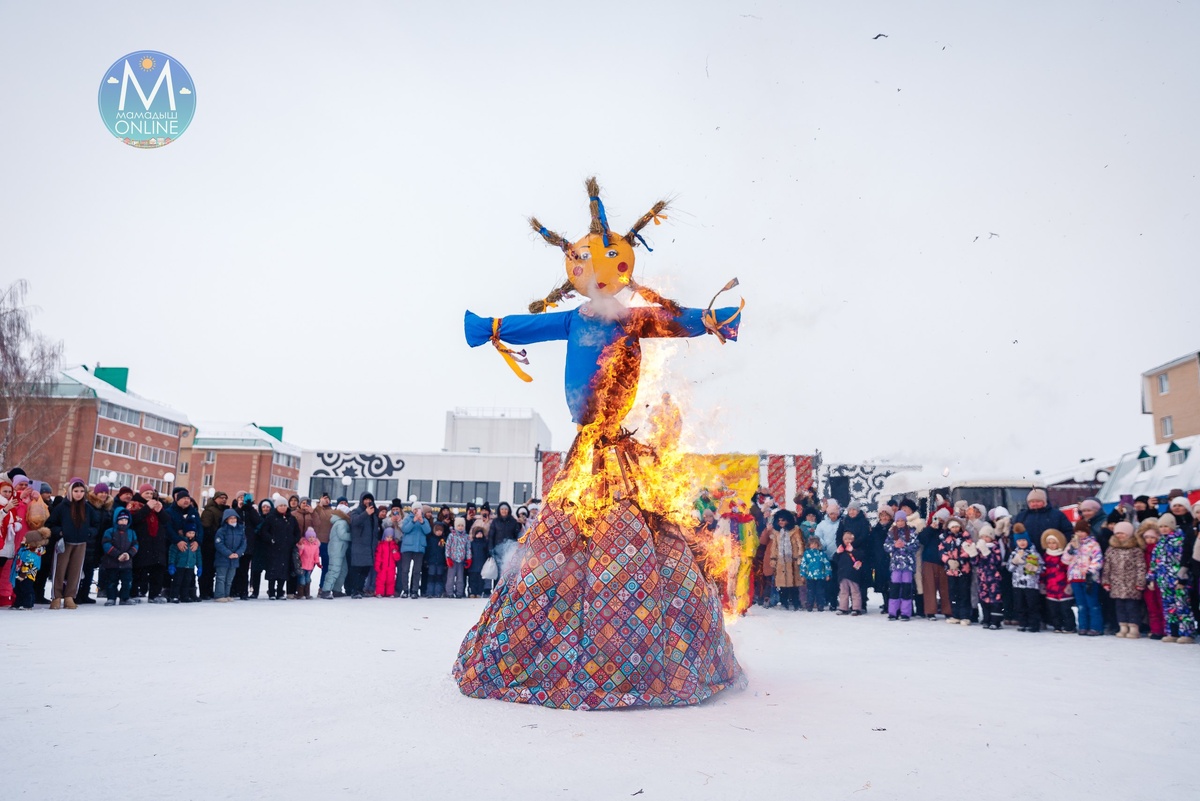 Ярким и зрелищным моментом народных гуляний в Мамадыше стало сожжение чучела Масленицы – символа ухода зимы и прихода весны