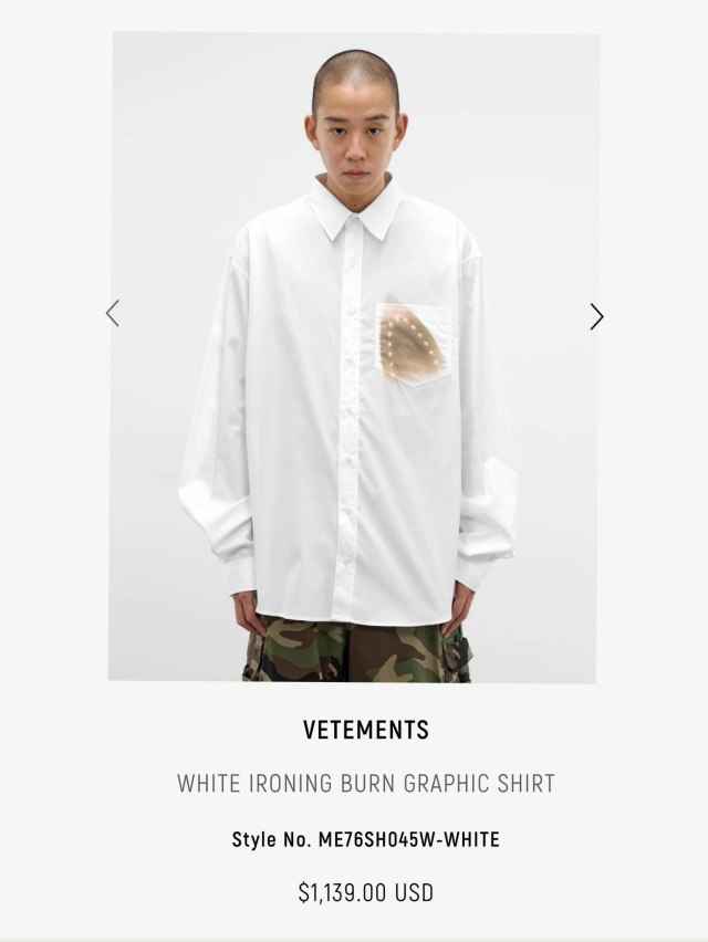 Швейцарский бренд Vetements продает рубашку с эффектом "следа от утюга" за 1139 долларов (почти 90 тысяч рублей).