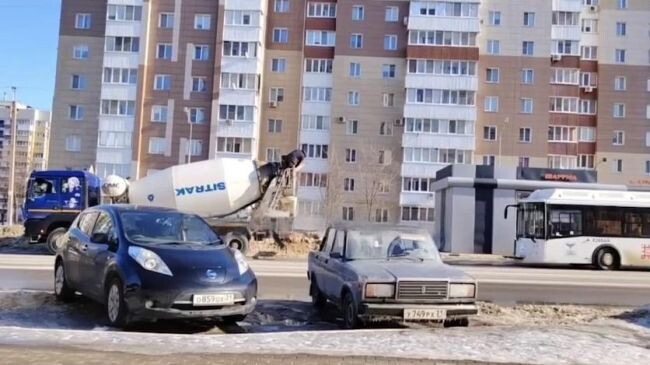 В Белгороде водитель бетономешалки слил отходы прямо на тротуар