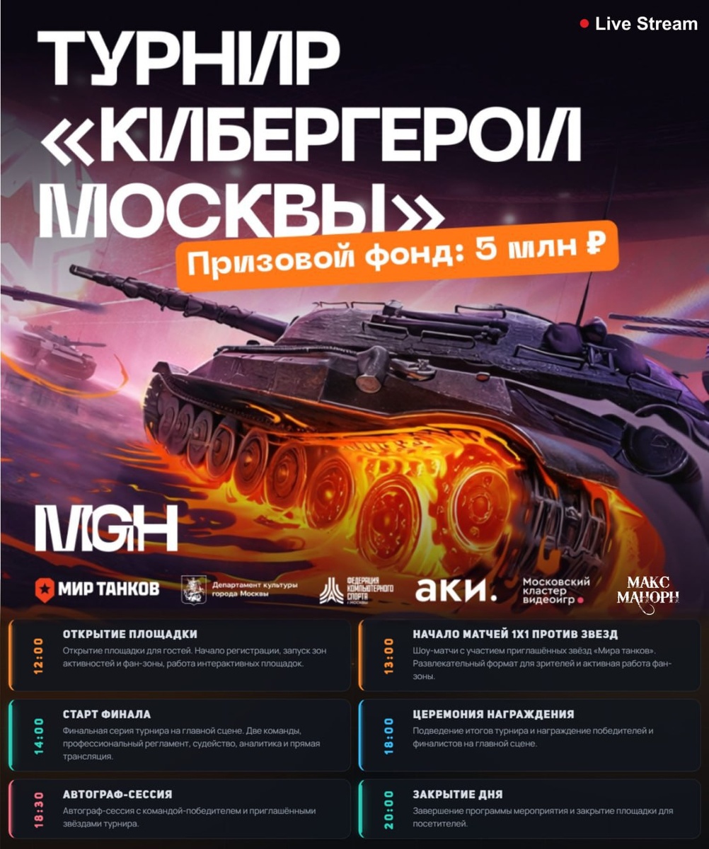 😀😃😀😆😃😍 📢📢 🎥 ➿➿➿➿➿➿➿➿➿➿ 1️⃣ - ПРЯМОЕ ВКЛЮЧЕНИЕ -1️⃣ 🚑 ТУРНИР "МИР ТАНКОВ" 🚑 🎖"КИБЕРГЕРОИ МОСКВЫ"🎖 🛰 ПРИЗОВОЙ: 5 000 000 р! 🛰 ➿➿➿➿➿➿➿➿➿➿ 🔰 Наше расписание: ⏰ 13:00 - 13:30 - запуск стрима ⏰ 14:30 - Играем с другими звездами против посетителей и онлайн зрителей в режим "Стальной охотник" ПРИСОЕДЕНИТЬСЯ МОЖЕТ ЛЮБОЙ ЖЕЛАЮЩИЙ!!! ПРИШЕДШИМ С НАШЕГО КАНАЛА - БОНУС! Всем кто примет участие в игре против меня, с нашего канала, подарю САБку на твиче и еще плюшки!) Делайте скрины если учувствуете! ⏰ 15:00 - прогулка по фестивалю, участие в активностях, розыгрыши ⏰ 18:00 - Церемония награждения ➿➿➿➿➿➿➿➿➿➿➿➿ 🔫 Подробней о мероприятии: ТУТ Встречаемся в Кластере видеоигр. Вход свободный, регистрация — по ссылке 📎 📍 «Сколково», Большой бульвар, д. 40 ➿➿➿➿➿➿➿➿➿➿➿➿ 1️⃣ Приходите смотреть на 📺 Twitch и ОБЯЗАТЕЛЬНО ставь ❤️ на 📱 VKВидеоLive!! ⏺ Все наши ресурсы.