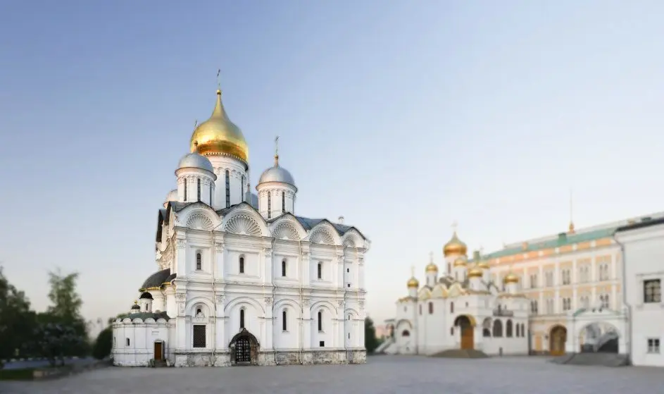Первый деревянный храм предположительно появился в середине XIII века. В 1333 году князь Иван Калита построил каменный собор. В конце XIV века храм расписал Феофан Грек. Современная версия собора была построена в 1505-1508 годах архитектором Алевизом Новым при великом князе Василии III. Собор украшен: В соборе расположено 56 погребений. Захоронения распределены по определенному порядку: Великие князья и цари: Другие значимые личности: Собор входит в комплекс музеев Московского Кремля. С 1991 года в храме возобновились богослужения. Доступ осуществляется в рамках музейной экспозиции. Режим работы: согласно графику работы музеев Московского Кремля.
