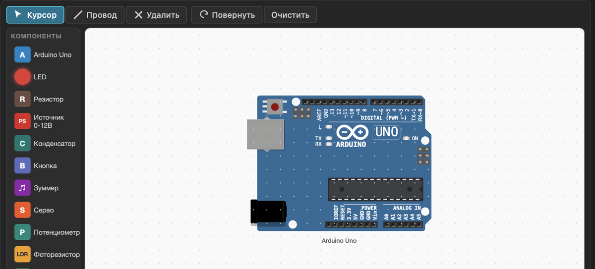 Привет! Сегодня мы расскажем как начать изучать Arduino не имея Arduino. Например, если у твоей школы или семьи нет возможности купить набор, но начать очень хочется. Сегодня я расскажу тебе, как при помощи ресурса урокробототехники.рф ты сможешь собрать простую схему со светодиодом. Давай достанем плату Arduino UNO Теперь достанем светодиод и резистор. Резистор нужен для того, чтобы наш светодиод не сгорел. Соединим их проводами Напишем наш скетч для управления светодиодом и нажмем кнопку “Старт”. Поздравляю! Ты собрал и запрограммировал свою первую схему. Сообщение Программируем Arduino без Arduino появились сначала на РОБОЛАТОРИЯ.