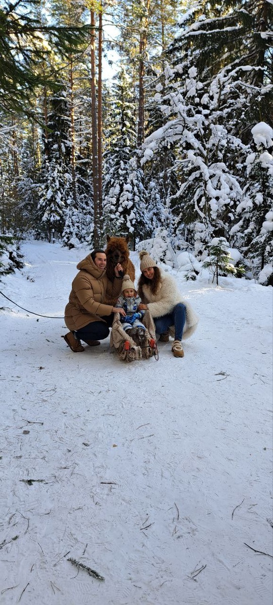 По традиции в выходные мы ходим в лес. Лес наш многолюден и летом и зимой. Кто-то катается на лыжах, кто-то на мотособаках. Сегодня снова была фотосессия. Альпака - главная звезда!!! Мы тоже по-соседски воспользовались моментом и сфотографировались. А потом шли вместе домой. #альпака #лес