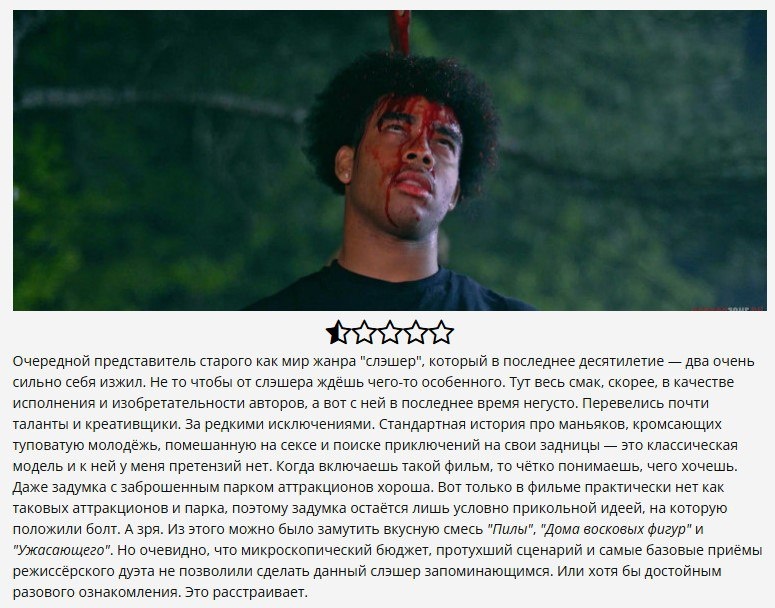 Меж тем, у нас в Фэнзоне откровенно плюются с фильма Traction Park Massacre, который ушлые прокатчики официально выкатили в РФ под названием