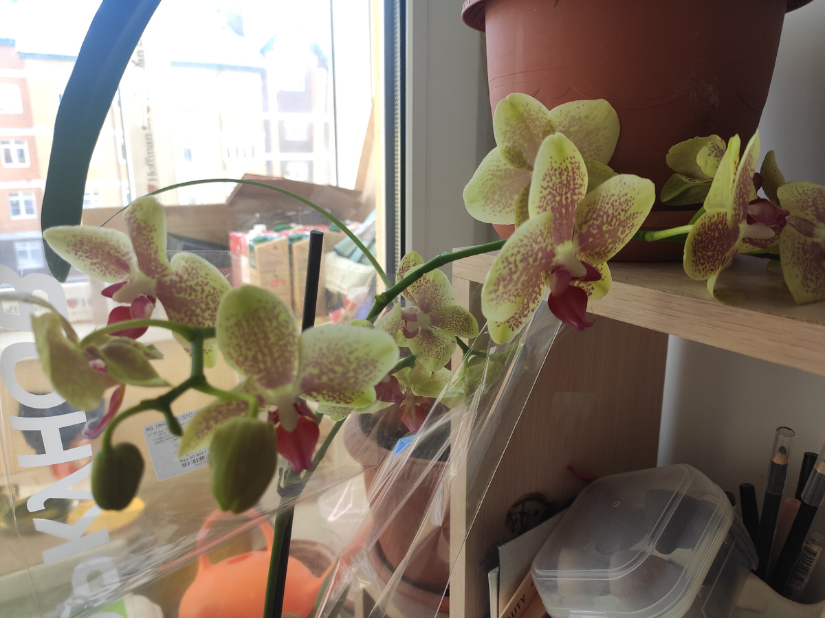 Купила маме новую орхидею в Оби. На орхидеи скидка, всего 899 рублей, а в январе были по 1400.