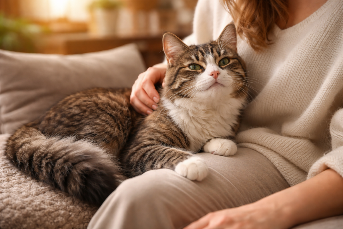 Даже если кошка просто лежит рядом, это сигнал доверия. Совместное присутствие в одном помещении позволяет питомцу чувствовать себя защищённым, а хозяину поддерживать стабильный эмоциональный контакт. Это также создаёт благоприятный фон для правильного питания и усвоения всех необходимых нутриентов.