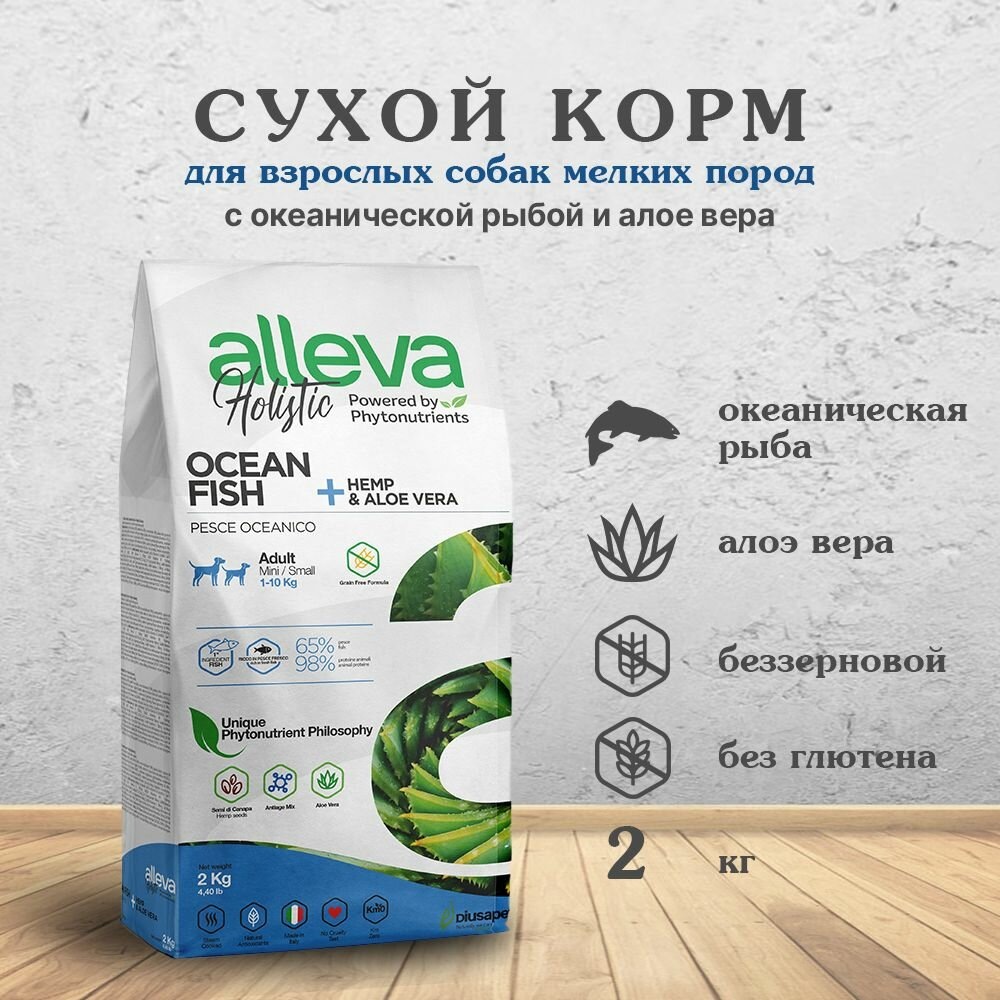 Итальянский холистик с океанической рыбой. Содержит 70% мясных и рыбных ингредиентов, коноплю и алоэ вера. Богат жирными кислотами, пребиотиками и антиоксидантами. Подходит не для всех пород собак.