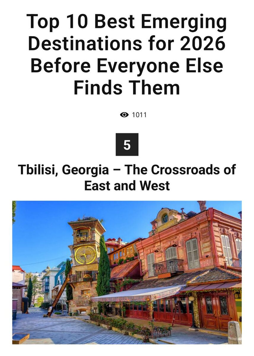 остальные" В описании рейтинга отмечается уникальная атмосфера города, где гармонично сочетаются исторические и современные элементы: персидские серные бани, архитектура советского периода, православные храмы и стильные дизайнерские кафе. Богемная среда, развитая гастрономическая сцена и доступный уровень комфорта делают Тбилиси привлекательным местом для путешественников. Также подчеркивается динамичное развитие Грузии: расширение авиасообщения и инвестиции в туристическую инфраструктуру. Тбилиси постепенно превращается в один из главных культурных центров Кавказа. Город является удобной отправной точкой для путешествий по стране, предлагая возможность посетить регион Кахети с его винодельнями или совершить восхождение на гору Казбек. Главный посыл рейтинга заключается в том, что путешественникам следует посетить Тбилиси сейчас, пока он не стал таким же популярным туристическим направлением, как Прага. Источник: Earthology365 Не забудьте подписаться ✍️