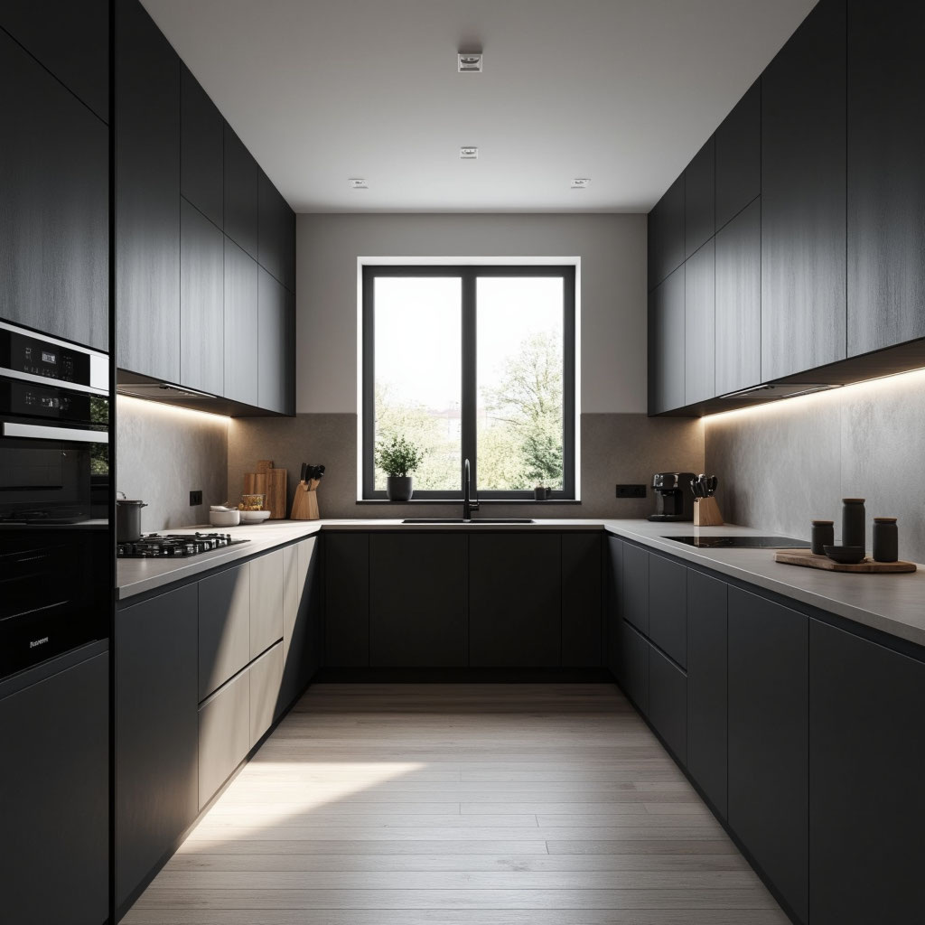 Дизайн кухни графит: работа с материалами и освещением