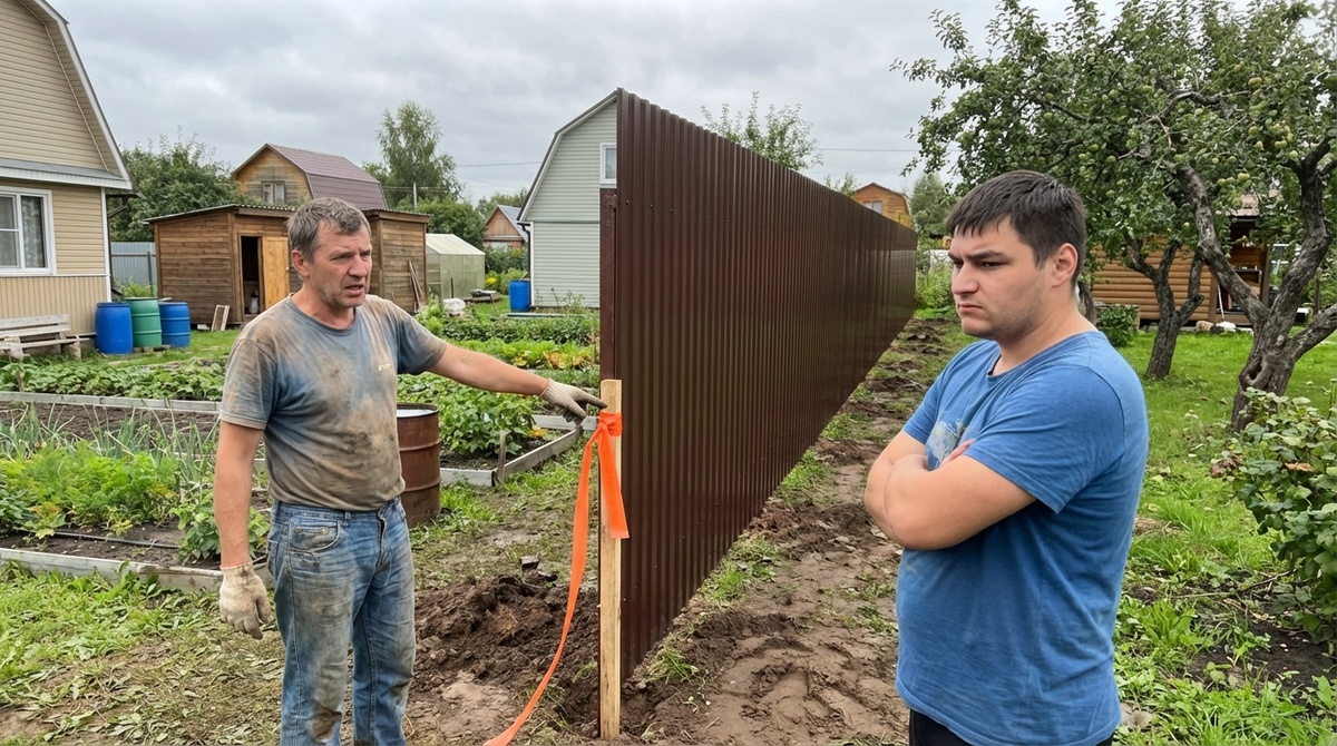 Стою я, смотрю на этот коричневый профлист, и у меня внутри все кипит. Это ж как надо совесть потерять? Пока хозяина нет, втихаря, как вор в ночи, загнать бригаду и отгородить себе кусок чужой земли!