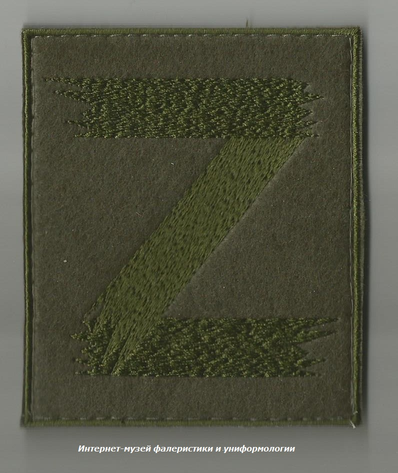 Представляет собой тканевую нашивку в форме прямоугольника черного цвета. В центре знака буква «Z» серого цвета. В