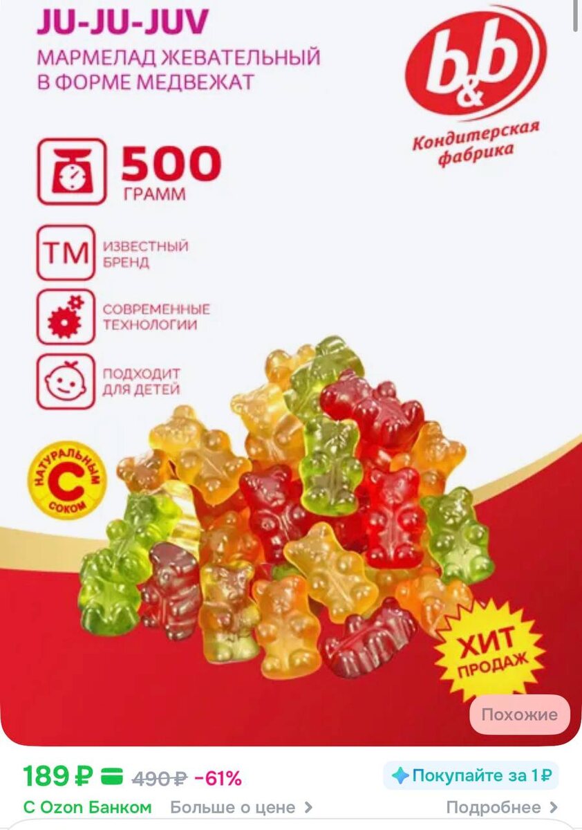 Мармелад жевательный "дЖу-дЖу-дЖув" (Ju-Ju-Juv) в форме медвежат 500гр