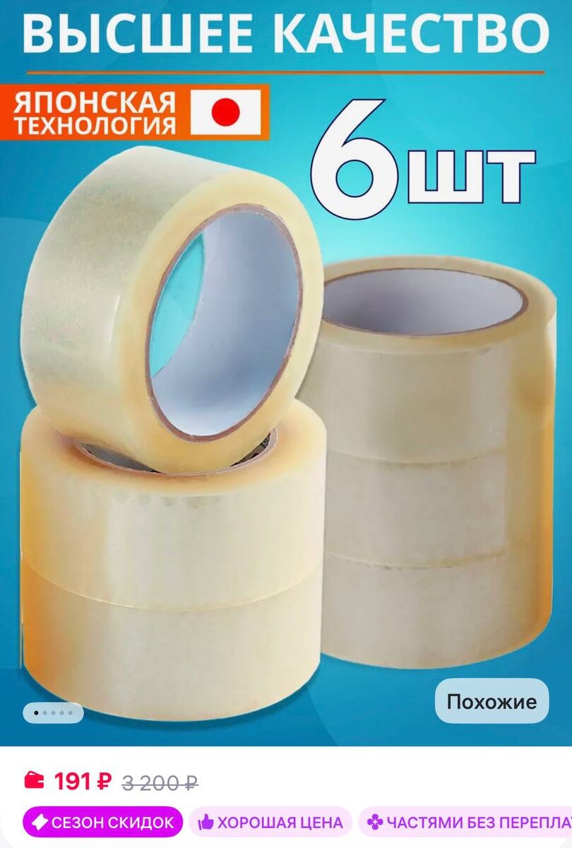 ТГ"Альянс" Скотч прозрачный широкий 6 шт в комплекте
