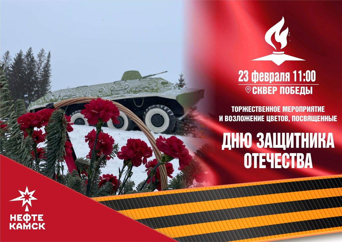 23 февраля в 11:00 в Сквере Победы состоится торжественное мероприятие, посвященное Дню защитника Отечества.