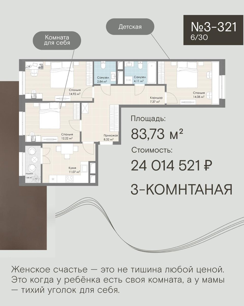 В ЖК «Дюна» продумано всё, чтобы жизнь была комфортной: отдельная детская, где дети могут играть и учиться, кухня-гостиная для разговоров и встреч, тихий уголок для отдыха, удобные зоны хранения и гибкие пространства, которые меняются вместе с вашими задачами. Смотрите подборку квартир для планирования личного счастья — выбирайте то, что подходит именно вам: • №3-321 — 83,73 м² → оформить заявку • №2-202 — 60,17 м² → оформить заявку • №2-235 — 82,84 м² → оформить заявку • №2-113 — 83,1 м² → оформить заявку Выбрать квартиру с видом во двор: жкдюна.рф +7-499-444-32-32 | telegram | мax (отвечают люди) Офис продаж на карте: яндекс | 2gis | google