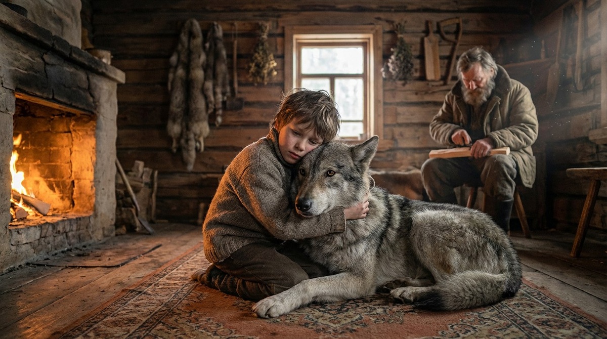 Но странным было другое. Ванька замечал: когда Буран спит, в избе меняется воздух. Становится густым, пахнет хвоей и озоном, как после грозы. А однажды ночью мальчик проснулся от того, что зверь смотрел на него. В темноте глаза Бурана светились не отраженным светом, а собственным, мягким зеленым огнем. «Не бойся, маленький», — прозвучало у Ваньки в голове. Не голосом, а ощущением тепла в груди. Мальчик тогда не испугался. Он просто подошел и обнял огромную лобастую голову. С той ночи они стали неразлучны.