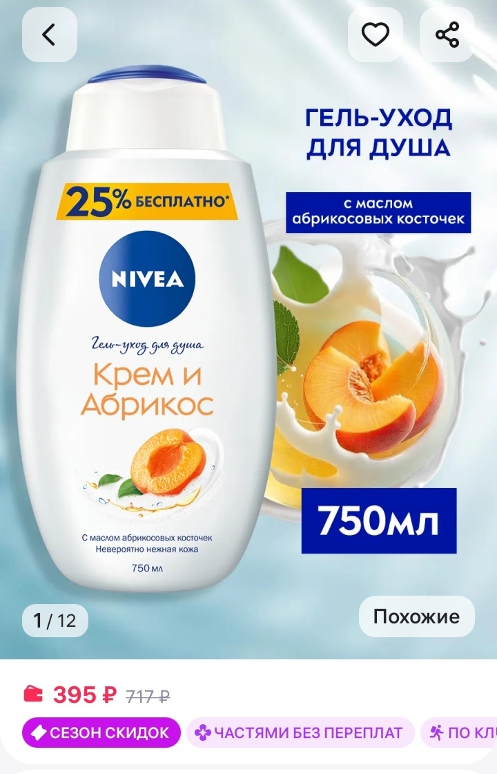 Всем привет. Я человек не метеозависимый, всегда так считала. Магнитные бури даже самые сильные не чувствую совсем, но в субботу с трудом пережила день. Весь день голова была чугунная, скакало давление, и к вечеру я поняла, что в этом виновата погода. Утром было минус десять градусов, а к вечеру на девять градусов потеплело, и градусник показывал всего один градус мороза. Очень сильный перепад температуры, потому и голова не выдержала, но, несмотря на это, день был отличный. Ярко светило солнце, и я пошла на улицу проветрить голову, и заодно зашла на Wildberries, получила гель для душа с маслом абрикосовых косточек. Зимой кожа на всем теле очень сухая. Руки и ноги я мажу увлажняющими кремами, а тело нет. Решила купить гель для душа с маслом, чтобы он немного увлажнял кожу. Выбрала «Нивею». Гель не из дешевых, но, может быть, от него кожа не будет такой сухой. Еще заказала и выкупила крем. Не знаю, какая у него цена в магазинах, но думаю, что не дешевле, чем на маркетплейсе. Потом заш