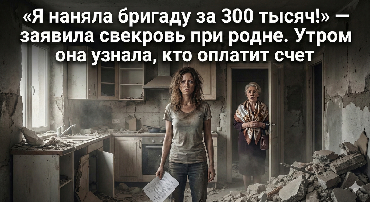 — В общем, я взяла дело в свои руки, — свекровь победно улыбнулась. — Я наняла бригаду. Серьезные ребята, по знакомству. Завтра приходят.