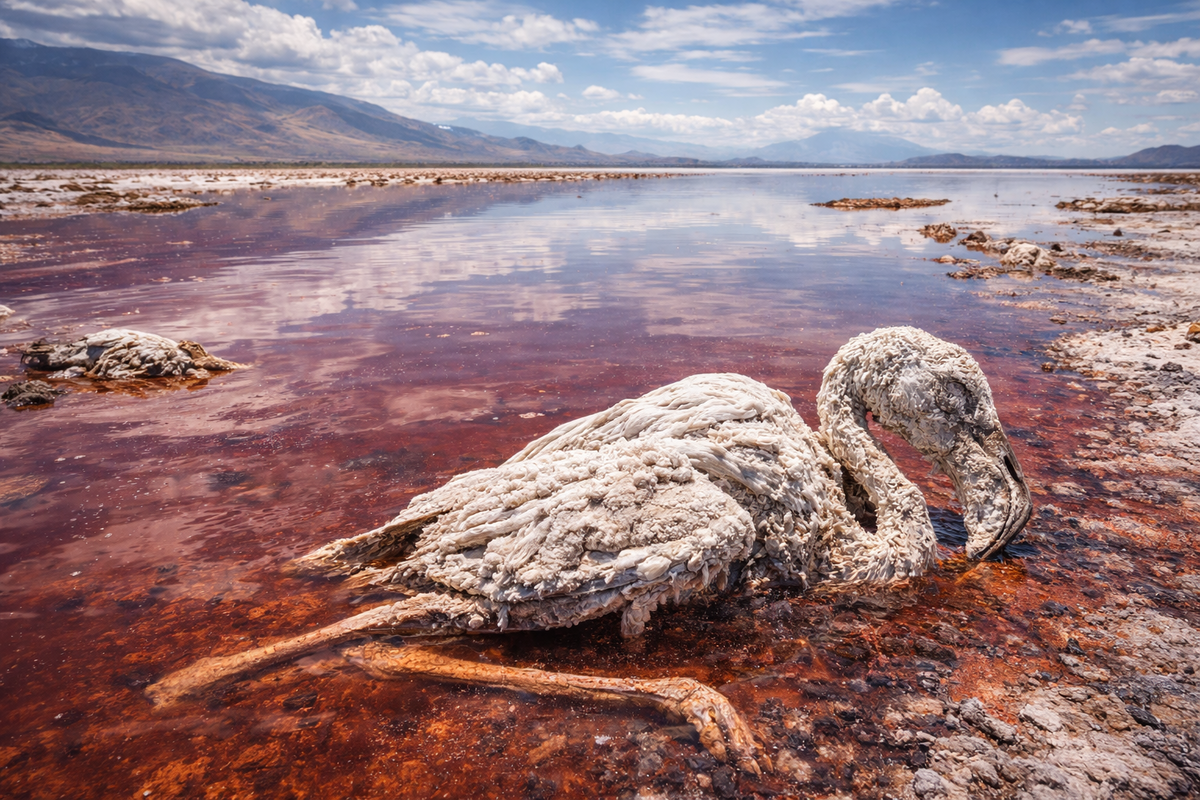 Именно из-за этой химии Натрон получил мрачную славу. На его берегах периодически находят погибших птиц и мелких животных с белесоватым налётом на теле. Внешне это напоминает каменную статую. Фотографии таких находок разошлись по всему миру и породили множество легенд. Но за эффектным образом скрывается вполне объяснимая химия.