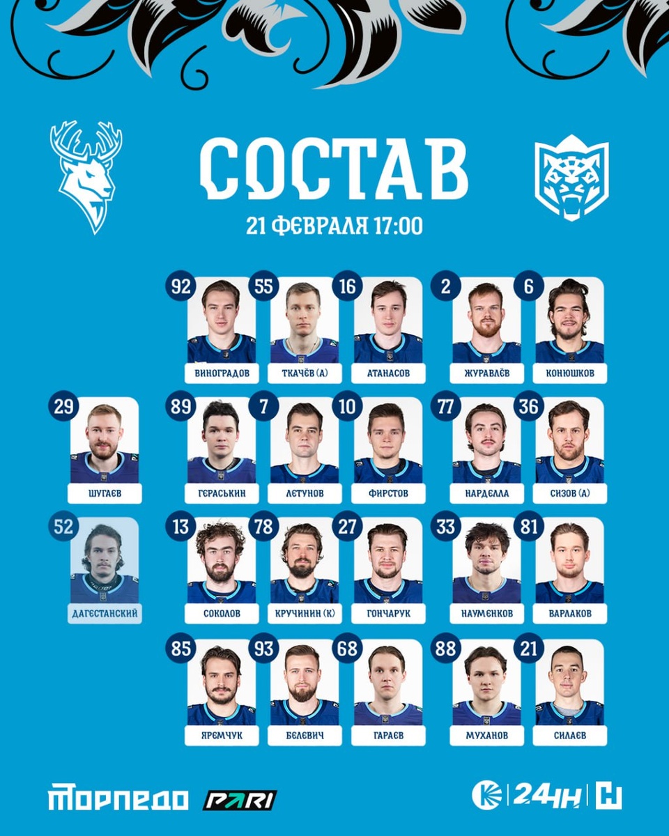 Тренерский штаб «Торпедо» определил состав на игру против «Ак Барса» 👏