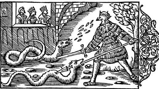 Первый его подвиг был подобен подвигу Геракла-он убил огромных змей короля свеонов Херода. Доспех у Рагнара был тогда войлочный. (9. 4. 6) Важный фрагмент «Деяния данов», показывающий мифологичность Рагнара: