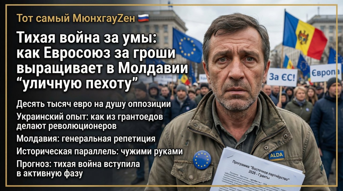 ) 🚨 Тихая война за умы: как Евросоюз за гроши выращивает в Молдавии "уличную пехоту" Помните знаменитый пост одного известного блогера: «берите зонтики, хорошее настроение и выходите»? Он был известной фигурой, но как о его призыве узнали тысячи именно активных людей, готовых к действию? Схема проста и эффективна. Задолго до 2013 года, сразу после первого "майдана" 2004-го, западные — прежде всего американские — неправительственные структуры начали активно создавать сеть лояльных людей. Основой сети были мелкие гранты по несколько тысяч долларов. Их давали на антироссийскую деятельность, на проукраинскую, прозападную пропаганду. Огромное количество мелких траншей — по 1-3 тысячи долларов в год на человека или лидера местной организации. Гранты получали журналисты, студенты-политологи, помощники депутатов (особенно те, кто отвечал за пиар). Деньги шли блогерам, дизайнерам, местным и даже государственным лидерам мнений. Журналисты на грантах вырастали в ведущих журналистов, эксперто