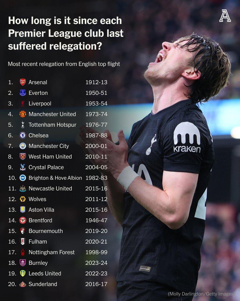 Когда последний раз текущие клубы Премьер-Лиги вылетали из высшего дивизиона ☝️