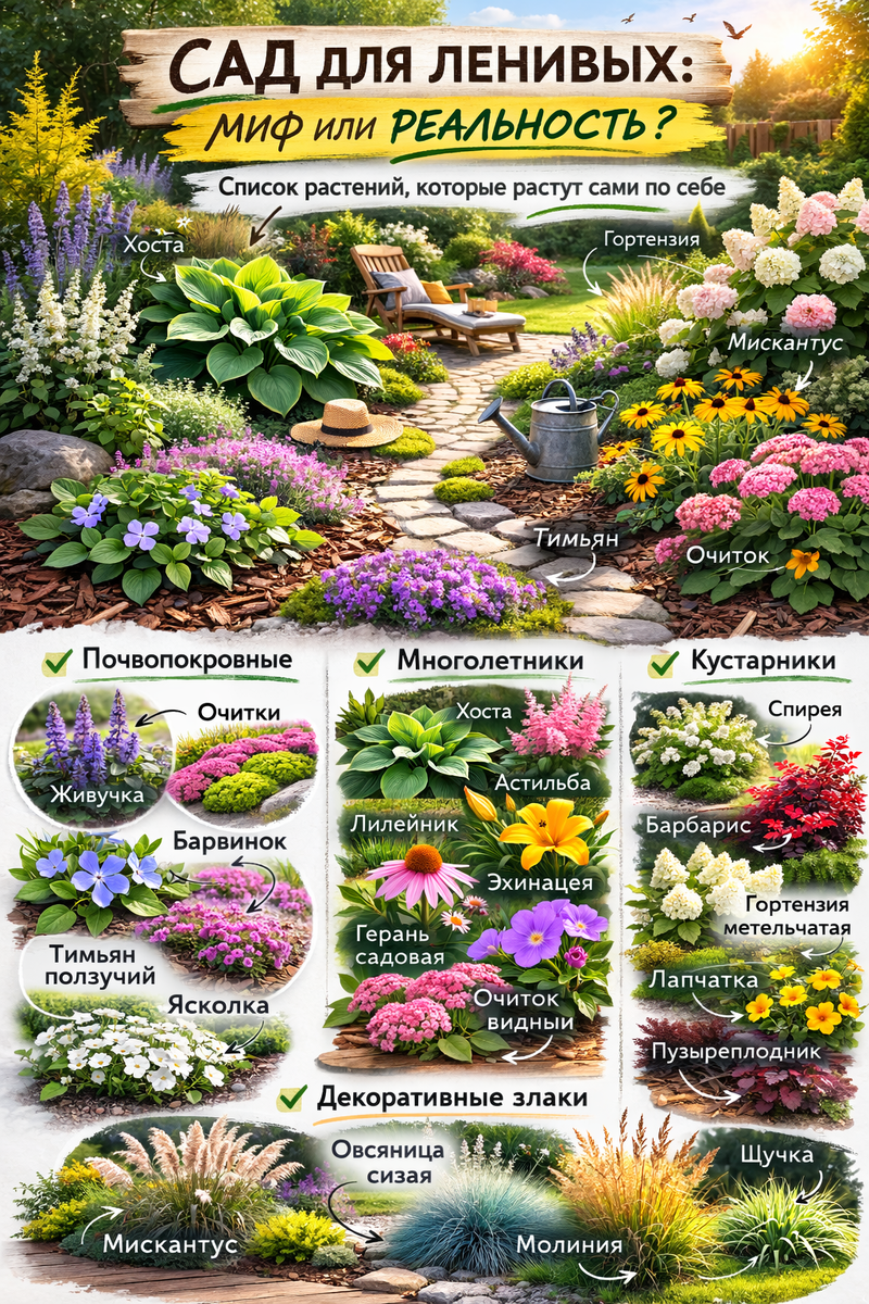 Спойлер: реальность, но с одной оговоркой. Полностью «ленивого» сада не бывает (растения — живые). А вот малоуходового — сколько угодно! Это главный тренд последних лет в ландшафтном дизайне. Эксперты называют это «экологичным садом» или «садом нового поколения», где природа работает за вас.