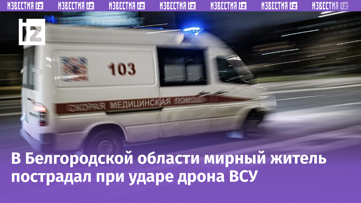 В хуторе Никольский Белгородской области в результате удара беспилотника Вооруженных сил Украины (ВСУ) пострадал мирный житель. Об этом 21 февраля сообщил губернатор региона Вячеслав Гладков. «В Борисовском округе в хуторе Никольский FPV-дрон ударил по «Газели». Мужчину в тяжелом состоянии с проникающим осколочным ранением грудной клетки бригада «скорой» доставила в Борисовскую ЦРБ», — написал Гладков в своем Telegram-канале. По его словам, пострадавшему оказывается вся необходимая медицинская помощь. Кроме того, повреждение получило транспортное средство. Оперштаб Краснодарского края 20 февраля сообщал, что один человек пострадал из-за падения обломков украинского беспилотника. В результате атаки также были повреждены восемь автомобилей, выбиты окна и повреждена газовая труба, произошел небольшой пожар, который впоследствии потушили, медицинская помощь пострадавшему была оказана своевременно. Все важные новости — в канале «Известия» в мессенджере МАХ