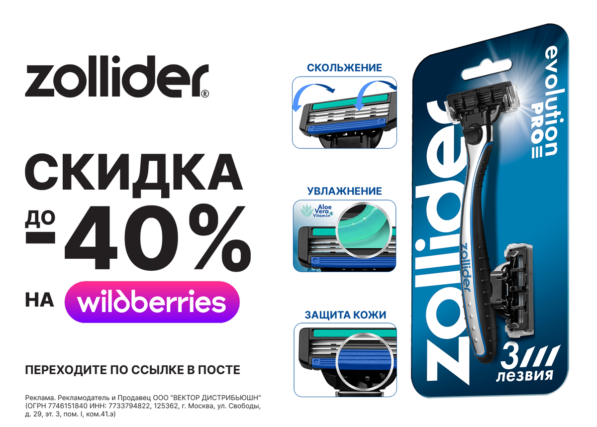 Еще не купили подарки мужчинам? Советую обратить внимание на бритвы Evolution PRO от Zollider на WB. Скидка только до 28 февраля, дальше 100% цена будет выше. Успевайте, пока есть в наличии 🔥. Заказать на Wildberries: https://zollider.prfl.me/profitable_promo_codes/aib26o?erid=2RanykJ8iti Реклама. Рекламодатель и Продавец ООО "ВЕКТОР ДИСТРИБЬЮШН" (ОГРН 7746151840 ИНН: 7733794822, 125362, г. Москва, ул. Свободы, д. 29, эт. 3, пом. I, ком.41.э) erid: 2RanykJ8iti
