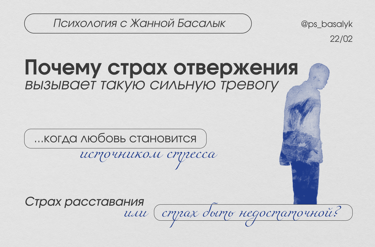 «Мне кажется, мы отдалились» могут вызывать: Это не “накручивание”, а физиологическая реакция нервной системы. Есть принципиальная разница, где расставание — это событие, а «меня не выбрали» — это удар по самоценности. Когда женщина боится не самого ухода партнёра, а того, что её сочтут “недостаточной”, запускаются глубинные установки: «Со мной что-то н
