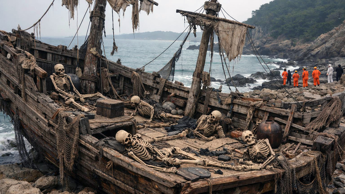 Представьте себе: тёплый день 2015 года, побережье южнокорейского города Тонхэ. Рыбаки и местные жители привычно поглядывают на море, как вдруг их взгляд цепляется за нечто невообразимое. К берегу, покачиваясь на волнах, приближается старое деревянное судно. Оно явно не из нашего времени — никаких тебе моторов, локаторов или железных бортов. Когда смельчаки поднялись на борт, кровь застыла у них в жилах: внутри их ждали семеро. Но не люди, а скелеты. И это было только началом самой загадочной истории десятилетия!