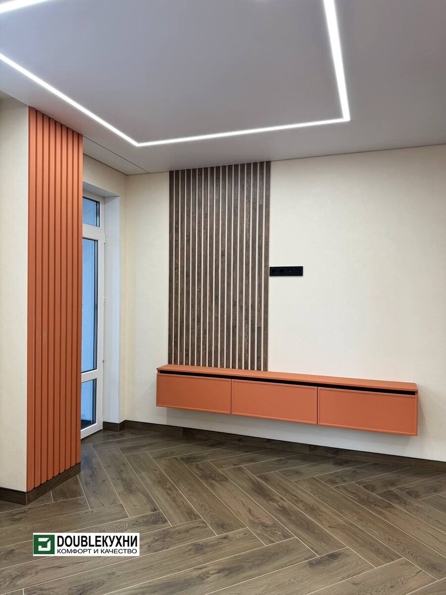 Автор дизайн-проекта Ольга Использовались материалы: • Фасад из МДФ Шарли терракота, фрезеровка «Кант 15мм» • Корпус ЛДСП Персеполь темный, кромка 1 мм • Рейки на стенах из МДФ Шарли терракота и ЛДСП Персеполь темный • Ручка скрытая, цвет черный. Ждём Вас в наших салонах ( по предварительной записи) • Николая Никитина 8: +7 (922) 268-64-14 Ольга • Василия Подшибякина 17 +7 (932) 488-38-85 Наталья +7 (932) 487-94-03 Анна