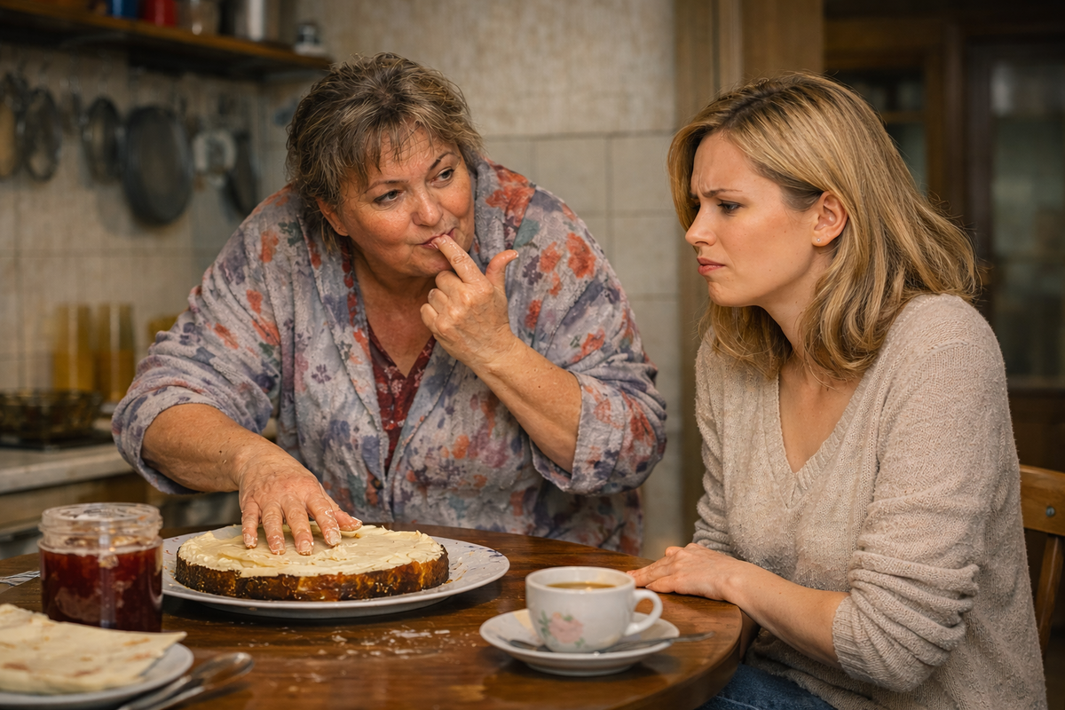 — Ой, посмотрите на неё, принцесса заморская! — свекровь облизала палец и потянулась за вторым куском. — Всю жизнь так ели, и никто не помер. Руки у меня чистые, я их об халат вытерла.