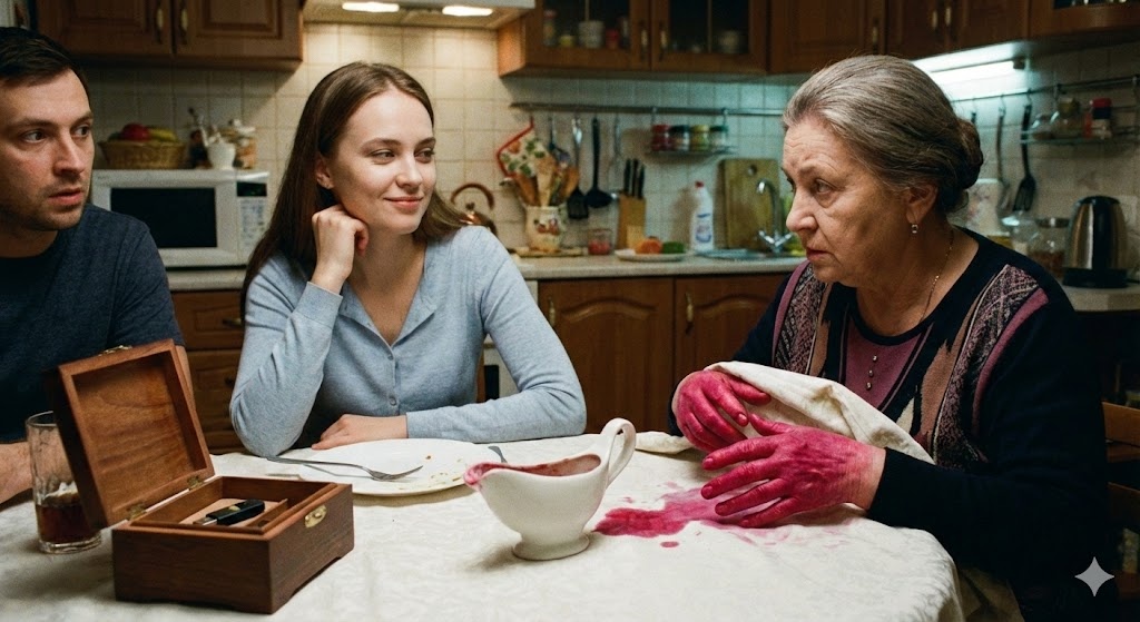 Тамара Павловна вошла в кухню, царственно оправив домашнее платье. Но что-то в ее движениях было не так. Она держала руки под столом, на коленях. Обычно она активно жестикулировала, раздавая указания, но сейчас сидела, словно приклеенная.