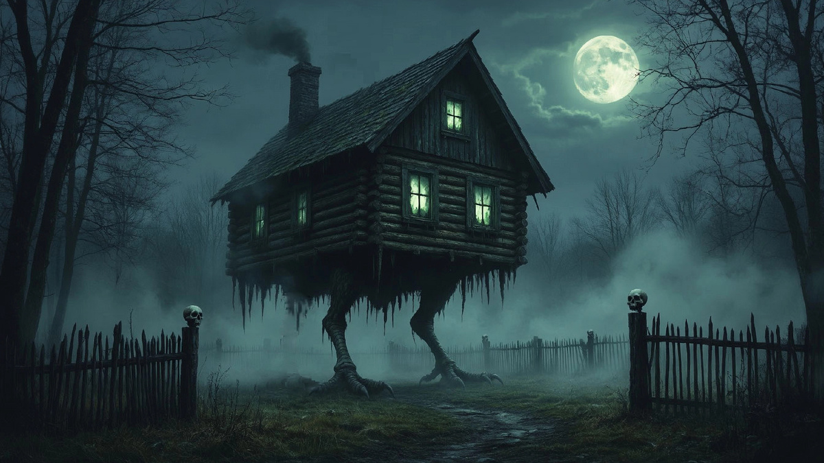 Не просто жилище Бабы-Яги, а портал в мир мёртвых, страж границы между Явью и Навью. Избушка не имеет окон и дверей со стороны обычного мира — они появляются только по велению героя: «Избушка, избушка, повернись к лесу задом, ко мне передом!» Курьи ноги — не просто забавная деталь, а зооморфный признак существа, принадлежащего иному миру. В некоторых легендах избушка умела ходить, бегать и даже сражаться. Частокол вокруг неё украшен черепами — это не пугач, а ритуальные сосуды, в которых, по поверьям, хранится «живая» и «мёртвая» вода или зелья.