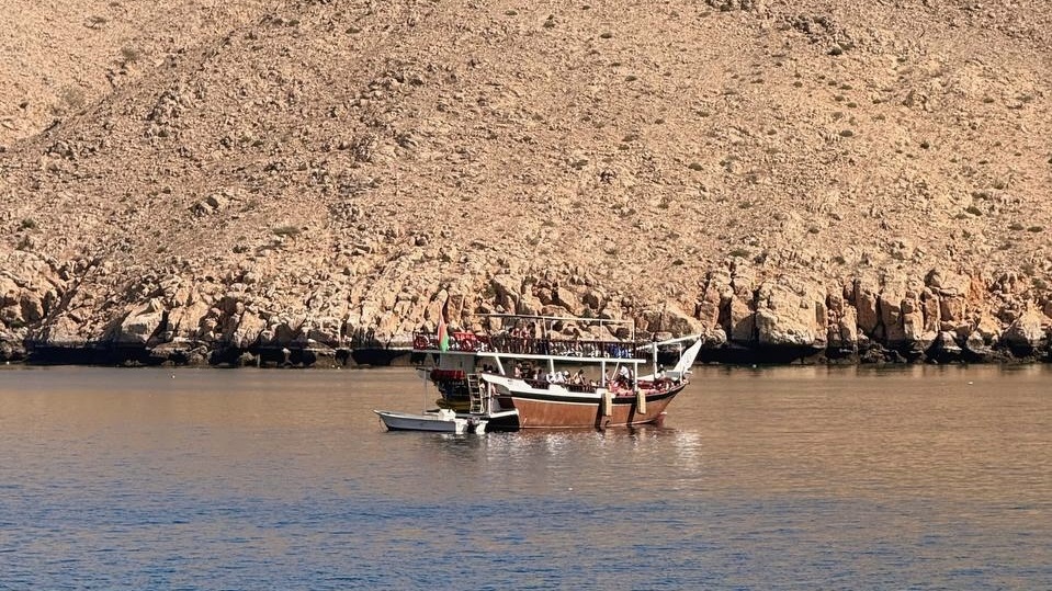 Есть путешествия, которые выглядят красиво на фото. А есть такие, которые внутри ощущаются как сон: воздух солёный и тёплый, горы — будто нарисованные углём, вода — как стекло... По плану у меня был морской круиз на полуостров Мусандам — это уже султанат Оман, страна на Аравийском полуострове. И да, это тот самый Оман, который не кричит “люкс!” на каждом шагу, а спокойно показывает: красота бывает тихой. Круиз — на весь день. Но честно: морально будьте готовы, что дорога туда‑сюда съест примерно 4 часа. Мы ехали автобусом, и это тот редкий случай, когда дорога не раздражает, а настраивает — из города в пустынные пейзажи, дальше горы, а потом внезапно: море. На границе — отдельное мини‑приключение. Гид рассказывала, что самые смелые могут попросить у пограничника кофе — и он не сможет отказать, потому что восточное гостеприимство. Я не проверяла, но очень хотела!
