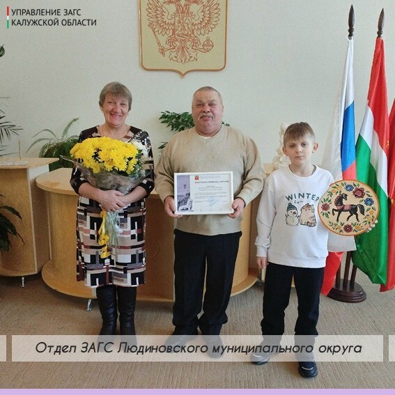 свадьбы! Поздравляем Василия Викторовича и Елену Михайловну с сапфировой свадьбой и желаем, чтобы ваши чувства оставались такими же светлыми, а любовь крепкой. Желаем вам бодрости духа, уюта в доме и светлых дней впереди! Благополучия вашей семье и доброго здоровья! За укрепление и сохранение семейных традиций, духовно-нравственный вклад в воспитание молодёжи и формирование ценностных ориентиров Российской семьи супругам вручили Благодарственное письмо Главы Людиновского муниципального округа Калужской области Геннадия. Ананьева и подарок Губернатора Калужской области Владислава Шапши «Летопись семьи». #ЗАГС40 #Чествование_юбиляров_семейной_жизни_40 #Жуковский_муниципальный_округ