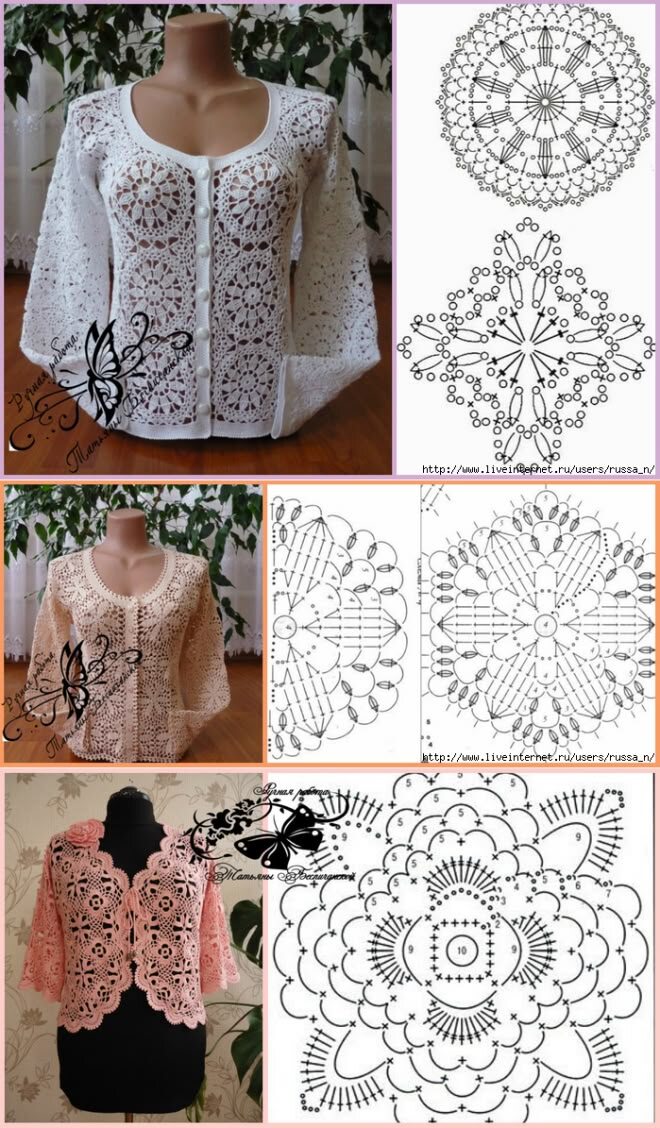 Доброго вечера! Сегодня делюсь с вами своей подборкой вязаных женских моделей крючком. Хорошо тем, кто хотя бы немного владеет и крючком: всегда можно разнообразить свои увлечения! Признаюсь честно: из мотивов никогда не вязала. Приходилось только сплошным полотном, но вот коллекцию составить не поленилась. Значит у нас всё ещё впереди! В статье найдётся кофточка на любой сезон. Разбивку по времени года и стилю не делала, поэтому статья получилась обширная и разнообразная, на всякий вкус и интерес. Постараюсь описанием крючком делиться почаще, ведь такой вид вязания также заслуживает внимания. Сколько ещё сокровищ можно отыскать в разных источниках и в свободном доступе. Своими находками обязательно поделюсь. Не прощаюсь!
