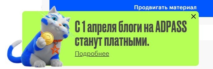 На заре запуска платформы ADPASS активно привлекал компании к ведению корпоративных блогов. Многие откликнулись, видя в этом возможность заявить о себе в профессиональной среде. Например, на нашем блоге вышла 191 публикация. Однако, как показывает практика, эффективность этого канала коммуникации стремится к нулю. В отличие от того же «Состава», где блоги интегрированы в главную ленту и дают реальный охват, наши публикации на ADPASS оставались незамеченными аудиторией. Обратной связи мы не получали никогда. И вот теперь платформа объявляет о введении платы за размещение. Стоимость, на первый взгляд, невысока (5 тыс. руб. с 1 апреля, 10 тыс. руб. с 1 июля), особенно в сравнении с тарифами VС. Однако ключевая проблема заключается в другом: неоплаченные блоги будут удалены. Здесь возникает конфликт ожиданий. ADPASS — издание, аффилированное с АКАР (Ассоциацией Коммуникационных Агентств России). Логично предположить, что отраслевая организация должна способствовать развитию игроков рынк