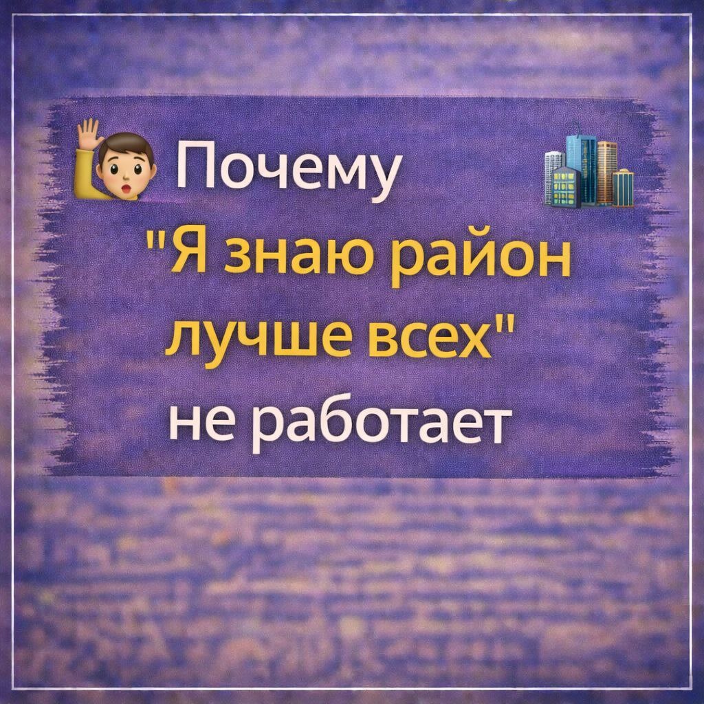 🌇 Очень часто на консультации я слышу одну и ту же фразу: «Я тут живу 15 лет, я лучше всех знаю этот район». И знаете, я в этом даже не сомневаюсь 😁 Вы правда знаете, где вкусный кофе, где тише двор и какие соседи адекватные. Но есть один нюанс - покупатель не живет в вашем опыте, он живет в своем страхе ошибиться. Когда собственник опирается только на личное ощущение, он начинает завышать ожидания. «У нас отличный дом», «Да тут всё разбирают», «Район перспективный». И в этот момент включается самое опасное - уверенность без анализа. Рынок не оценивает эмоции, рынок оценивает спрос, конкуренцию и цифры. Пока вы уверены, что квартира «точно стоит своих денег», рядом может выйти аналог дешевле, с лучшей подачей и более понятной стратегией, и покупатель уйдет туда, даже если вы знаете район в три раза лучше. Я всегда говорю клиентам: знание района - это плюс, но стратегия продажи - это другое измерение. Важно понимать не только «что здесь хорошего», а кто сейчас реально ищет квартиру