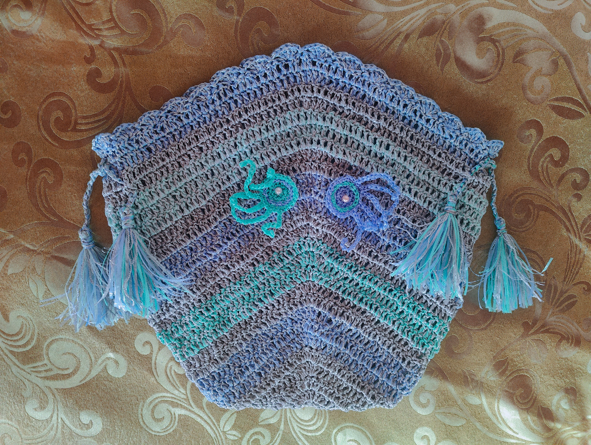 Связала два простых осьминожка и пришила на лицевой части сумки