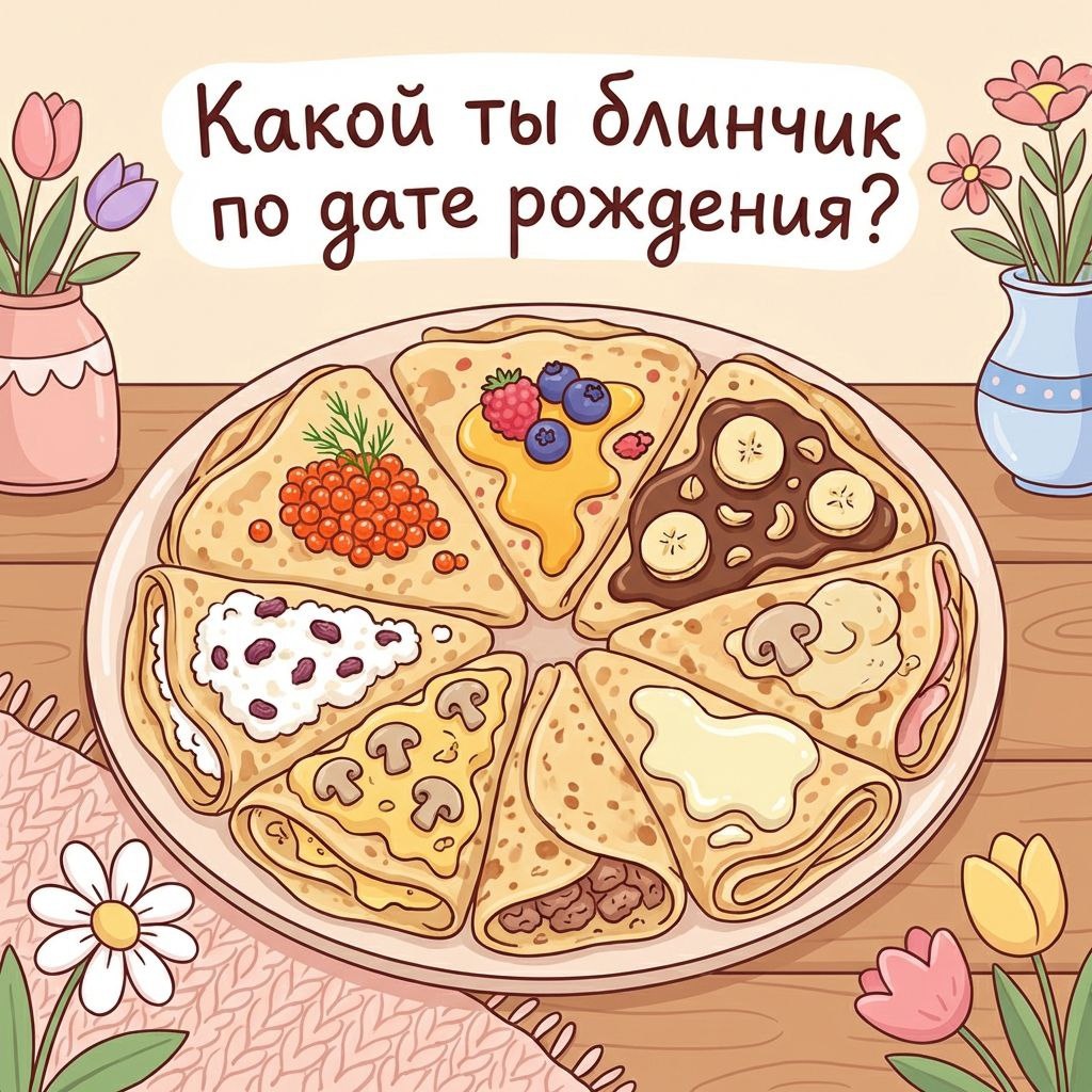 ? Узнай свой блинный характер!👇 Родились 1, 10, 19, 28 числа — БЛИН С ИКРОЙ 🐟 Вы — элитный блин! Любите быть в центре внимания, притягиваете успех и роскошь. Амбициозны и самодостаточный! Родились 2, 11, 20, 29 числа — БЛИН С МЕДОМ 🍯 Вы — сладкая душа! Мягкие, деликатные, чувствительные. Цените гармонию, уют и теплые отношения. Родились 3, 12, 21, 30 числа — БЛИН С ШОКОЛАДОМ 🍫 Вы — вкус праздника и веселья! Умеете поднять настроение. Ваша энергия — заразительная и вкусная! Родились 4, 13, 22, 31 числа — БЛИН С МАСЛОМ (классический) 🧈 Вы — надежный и проверенный! Цените традиции и порядок. Вы основа основ! Родились 5, 14, 23 числа — БЛИН С КРАСНОЙ РЫБОЙ 🐠 Легки, обаятельны, умеете удивлять. Вы приключение с изысканным вкусом! Родились 6, 15, 24 числа — БЛИН С ТВОРОГОМ 🥛 Вы — любимец всей семьи! Домашние, сытные. Создатели уюта, и домашнего тепла.Вы — опора для всех! Родились 7, 16, 25 числа — БЛИН С ГРИБАМИ 🍄 Вы — загадочный блин! Глубокие, интуитивные. Необычны, инт