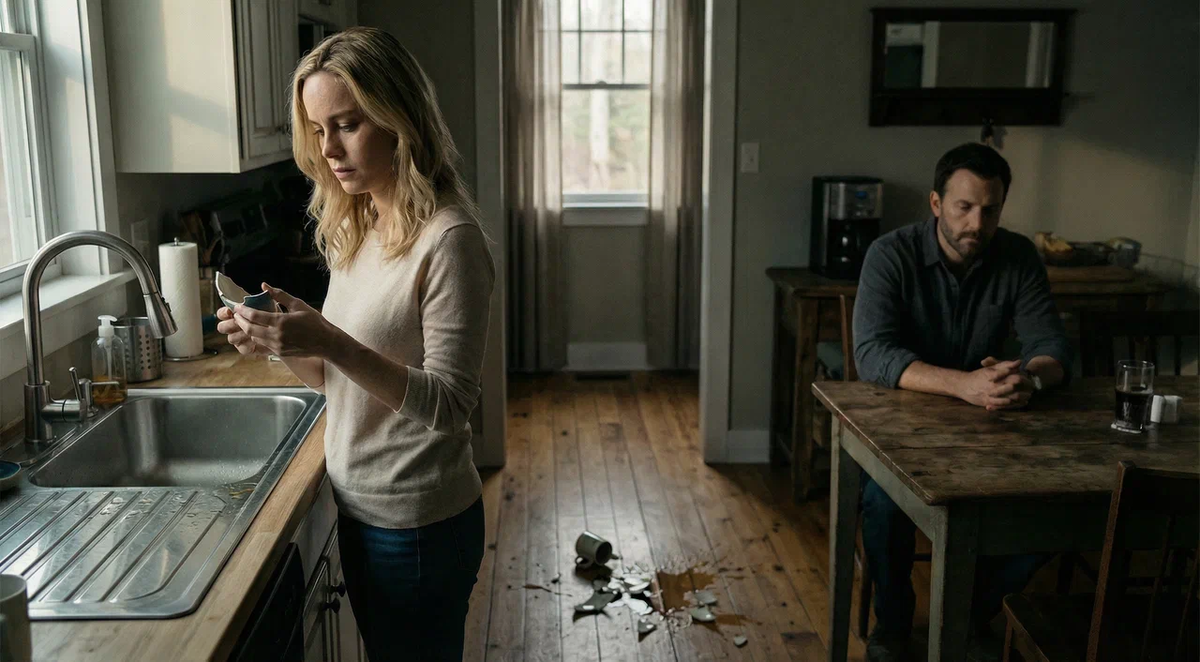 Ольга вернулась к раковине и взяла кружку — керамическую, с грубоватой глазурью, которую Андрей привёз из командировки. Кружка выскользнула из мыльных пальцев и разбилась о кафель со звонким треском.