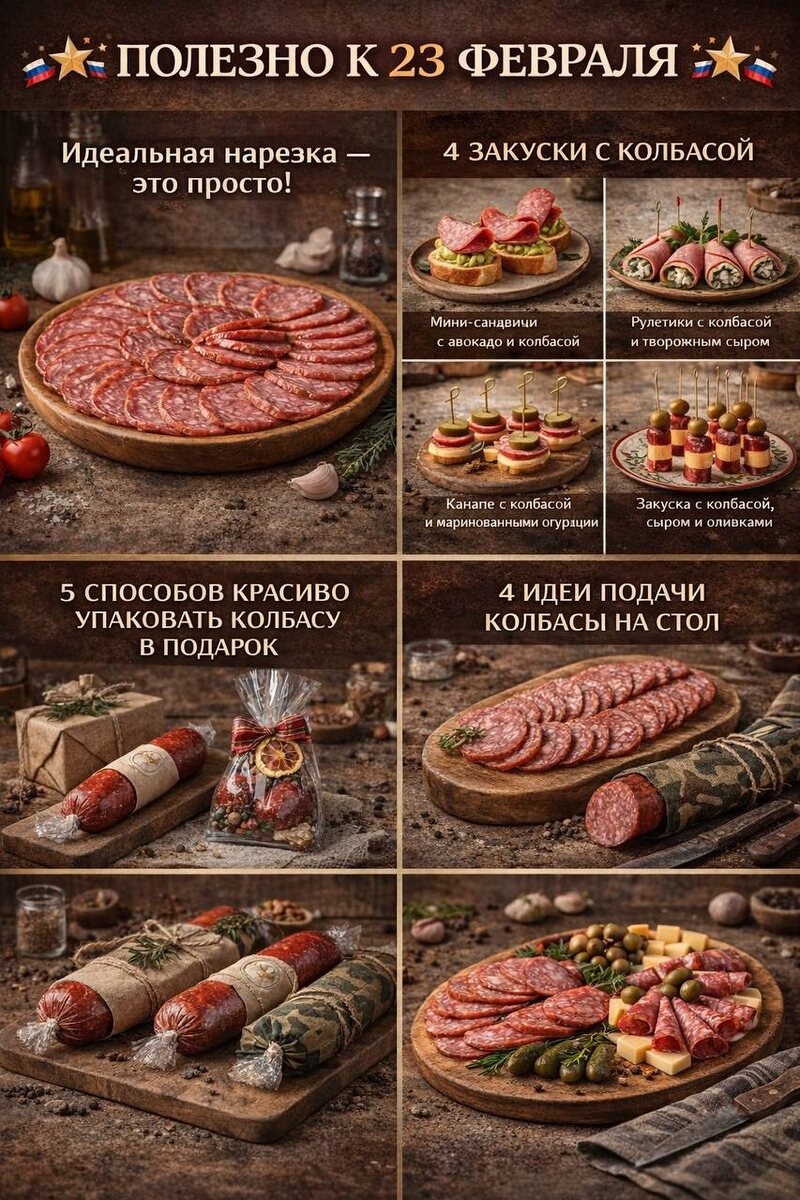 😍 В преддверии праздника мы собрали для Вас список постов, которые точно окажутся полезными🤭🤭 ⭐️Идеальная нарезка — это просто! ⭐️4 быстрые закуски с колбасой ⭐️5 способов красиво упаковать колбасу в подарок ⭐️4 идеи подачи колбасы на стол Загляните и вдохновитесь😉