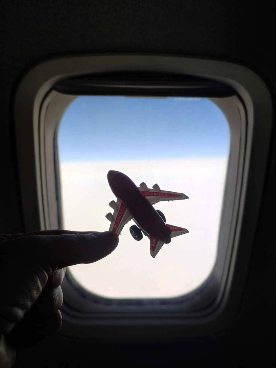 В кресло рядом с нами плюхнулся небритый грузин, включил кино в наушниках и периодически матерился вслух, нервно ожидая взлëта. Потом он матерился из-за сэндвича, потом из-за чая. Мои частые переступания через его ноги смирно терпел.