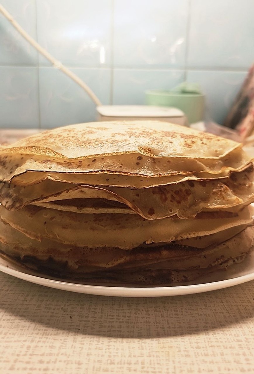 Ох, сколько видов блинов- на молоке, кефире, воде... Да что уж там. Даже на протеине! И в каждой семье - свой рецепт. Мама филигранно делает на кефире- те самые, через которые виден морской прибой далеких стран, вот такие ажурные! Я же прониклась рецептом рязанских каравайцев- тонкие, узорные, хороши для начинки. И, что не маловажно, можно сделать "правильные"))) Иииитааак, рецептус выдавайтус! - 3 яйца, - 180 гр муки - 0,5 молока - сахар, соль, ванилин (это по вкусу) - 3 ст.л растительного масла И будет так... Сошлись как-то три яйца, да побились в одну миску. Взбились об заклад, что к ним соль, сахар, ванилин добавили. А тут еще 1/3 хорошо теплого молока добавили. Но не хватало того, что их свяжет - и это мука! Бухнули её, просеянную, взболтали и добавили вторую треть молока. Жужжит жужжалка, взбивает смесь липучую. А последняя треть молока вскипела, да и запросилась к другим частям. Вот и замешалось тесто. Хорошо? Хорошо, да не очень то... Растительное масло забыли! А как влили золо